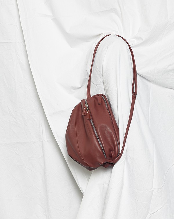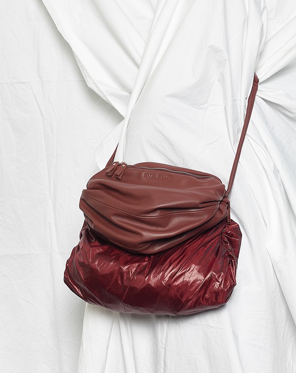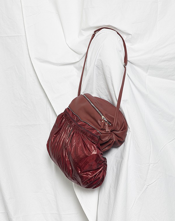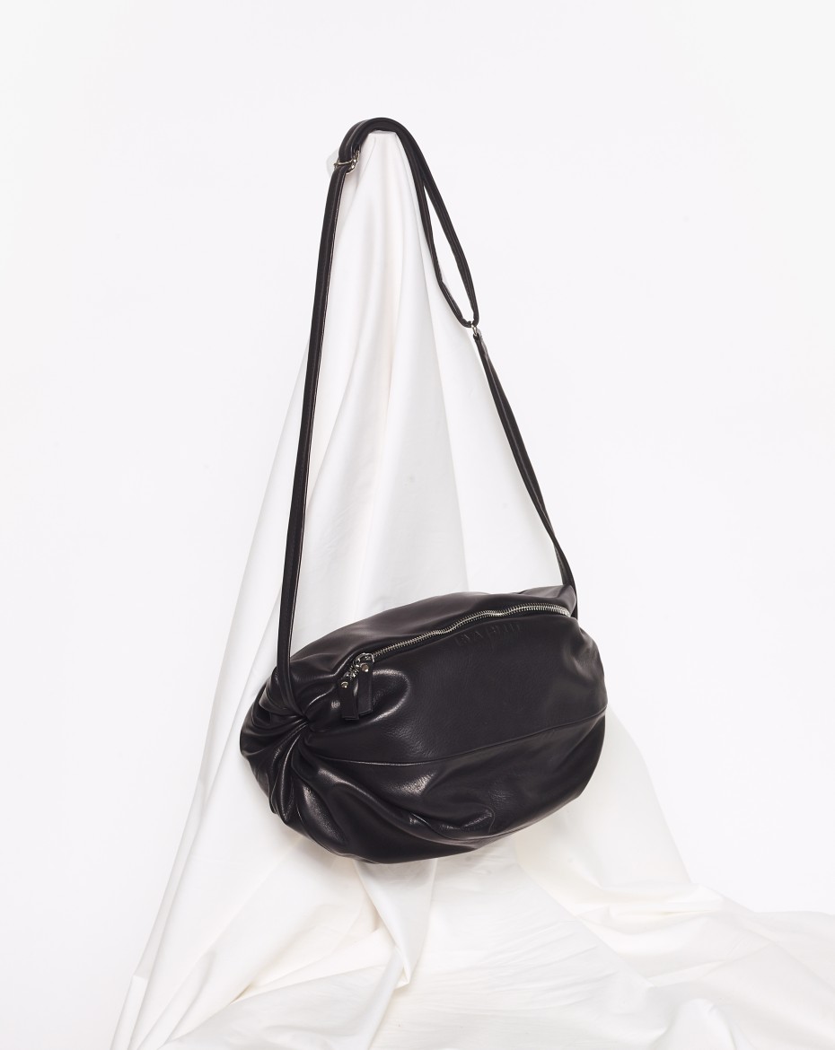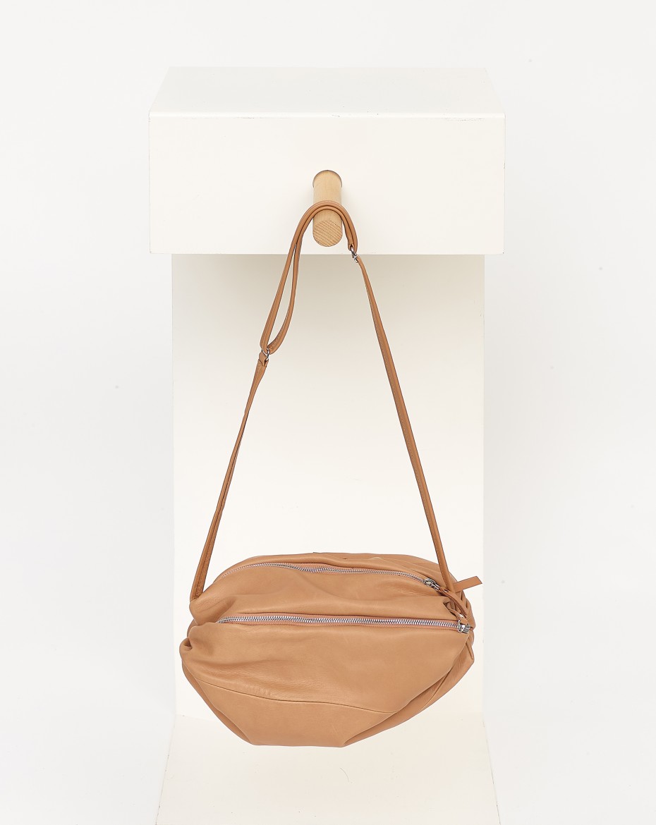 La Bomba ist eine kleine Crossbody-Tasche in weicher plissierter Kugelform. Eine kleine Tasche die sich mit dem integrierten airbag vergrößern lässt, wenn man mehr Raum braucht.